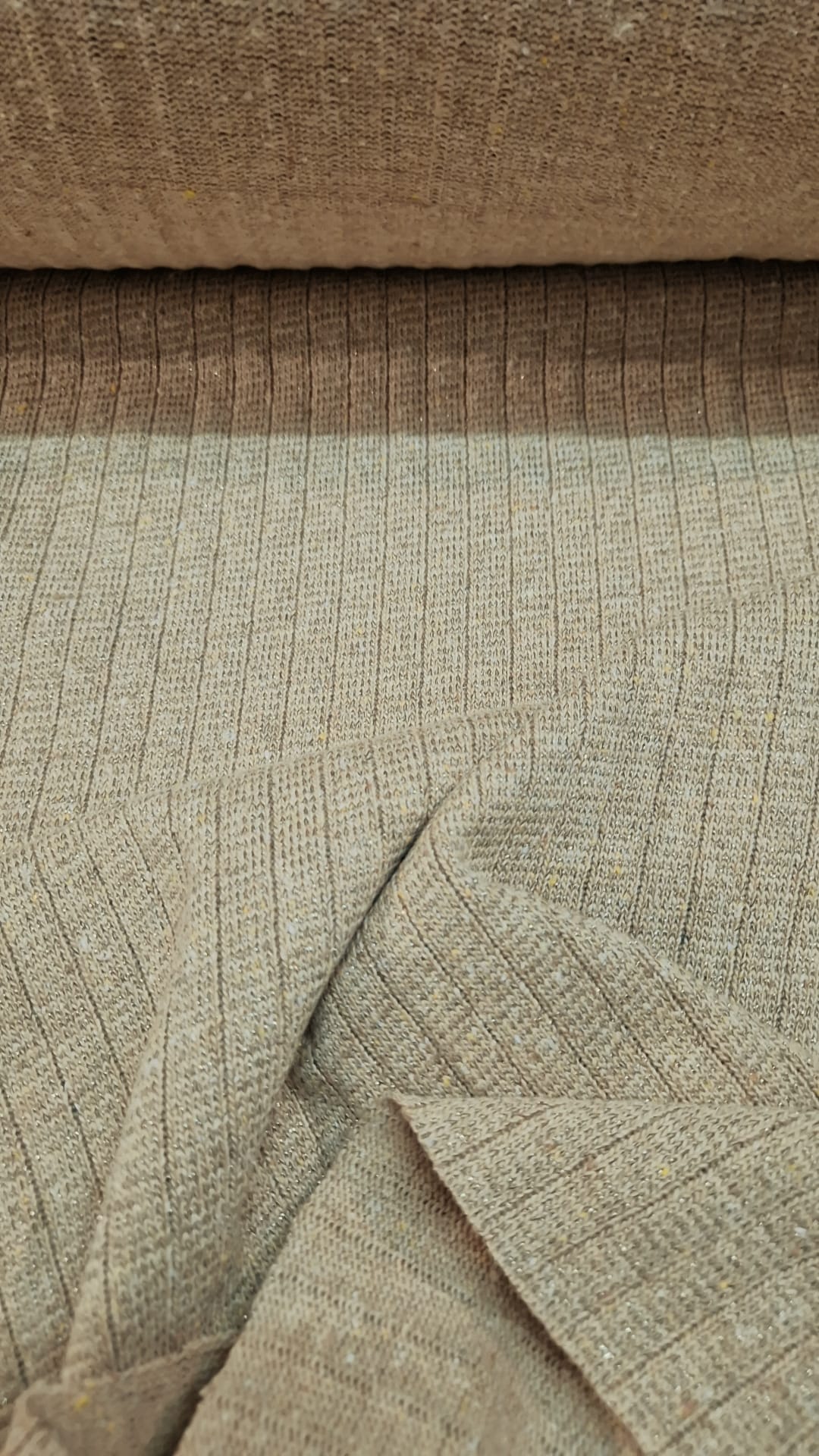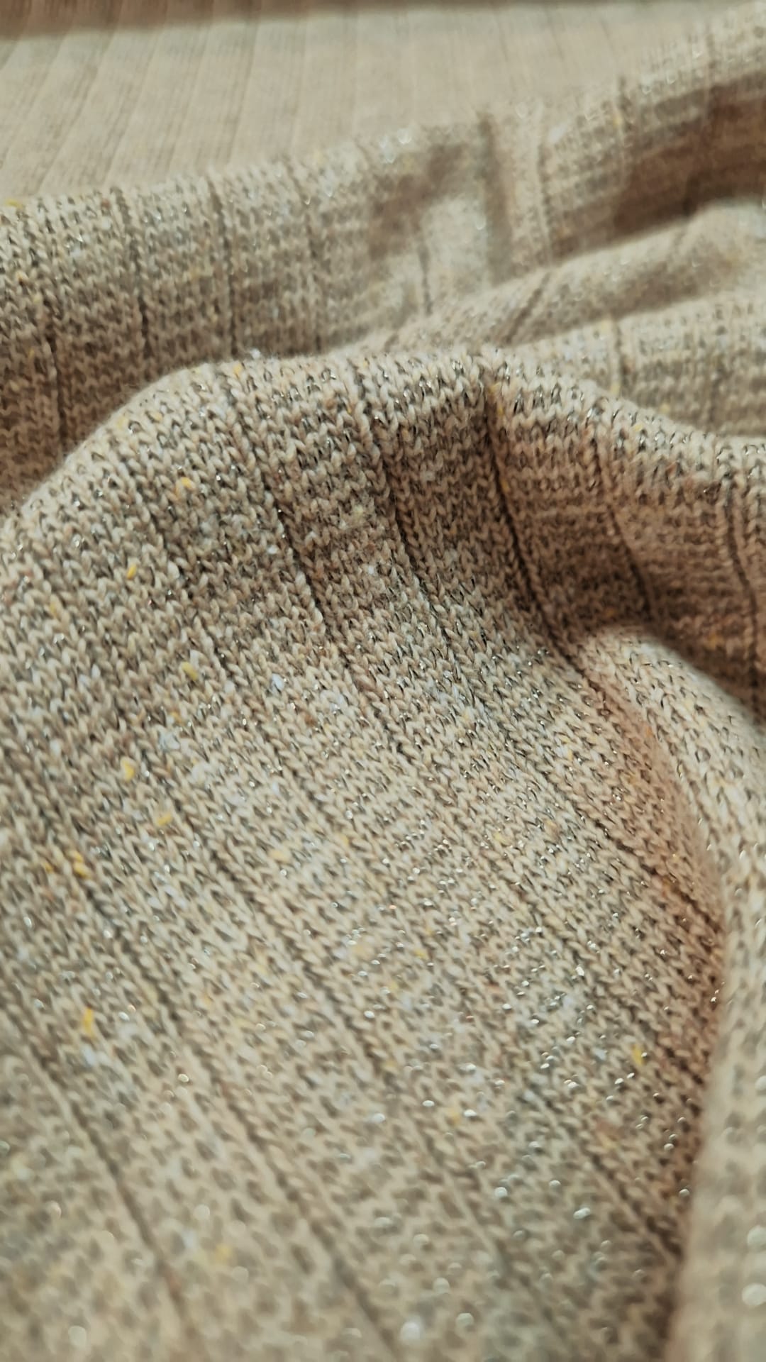 Malha tricotada com fio lurex dourado